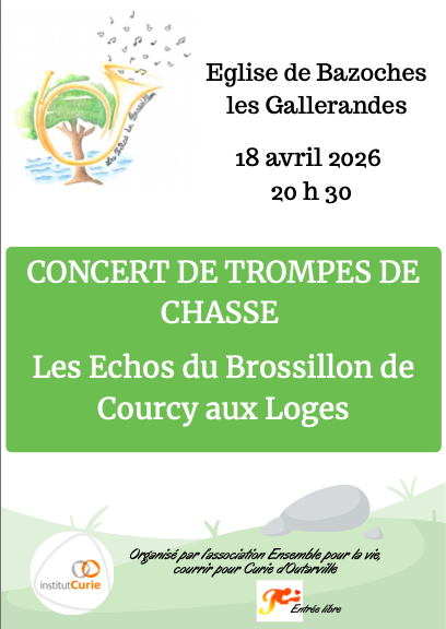 L’Église de Bazoches-les-Gallerandes se pare d'une atmosphère solennelle le samedi 18 avril 2026 à l'occasion d'un grand Concert de Trompes de Chasse. À partir de 20h30, le groupe « Les Echos du Brossillon de Courcy aux Loges » fait vibrer les voûtes de l'édifice avec un répertoire puissant et traditionnel. Cette soirée musicale dépasse le simple cadre artistique : elle est portée par l'association « Ensemble pour la vie, courrir pour Curie d'Outarville ». L'objectif est de soutenir l'Institut Curie dans ses missions de recherche et de soin contre le cancer. La manifestation propose une entrée libre, permettant à chacun de découvrir cet instrument classé au patrimoine culturel immatériel tout en faisant un geste solidaire. Un rendez-vous de caractère pour les passionnés de culture.
