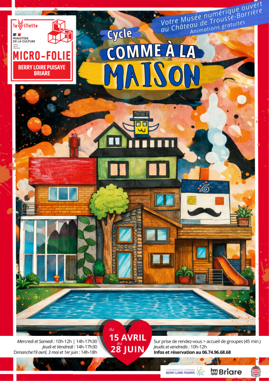 Du 15 avril au 28 juin, la Micro-Folie Berry Loire Puisaye à Briare propose le cycle « Comme à la maison », une programmation d’animations culturelles ouverte à tous. Installé au château de Trousse-Barrière, ce musée numérique invite petits et grands à découvrir l’art de manière ludique et interactive. Au fil des semaines, ateliers, temps de découverte et expériences immersives permettent d’explorer les œuvres autrement, dans une ambiance conviviale et accessible. Cette programmation s’adresse aussi bien aux familles qu’aux groupes, avec des séances régulières et des créneaux sur réservation. Une occasion de vivre la culture autrement, au plus près de chez vous, et de partager un moment créatif et enrichissant.