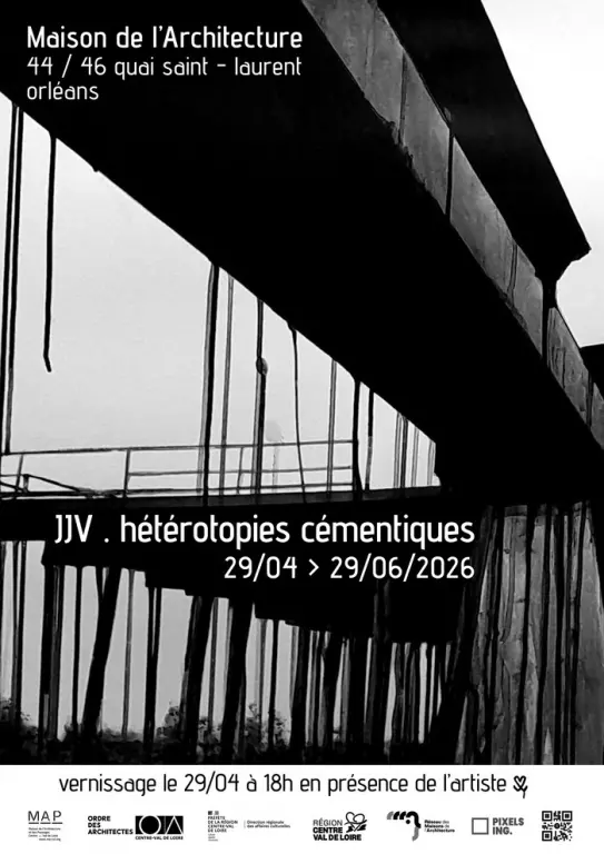 À l’invitation de la Maison de l’Architecture et des Paysages Centre-Val de Loire, l’exposition Hétérotopies cémentiques de Jean-Jacques Valencak (JJV) est présentée du 29 avril au 29 juin 2026, avec le soutien de partenaires institutionnels. Inspirée par le concept d’hétérotopie développé par Michel Foucault, l’exposition explore ces « lieux autres » inscrits dans le réel mais porteurs d’utopie. JJV propose ici des mondes dans le monde, des architectures suspendues entre matérialité brute et projection intérieure. Les œuvres, réalisées d’après photographies, sont peintes à l’acrylique sur papier en lavis verticaux. La matière noire s’écoule, transforme les perspectives et affirme sa propre gravité. Le béton, élément central de l’architecture moderne et brutaliste, devient sujet ...