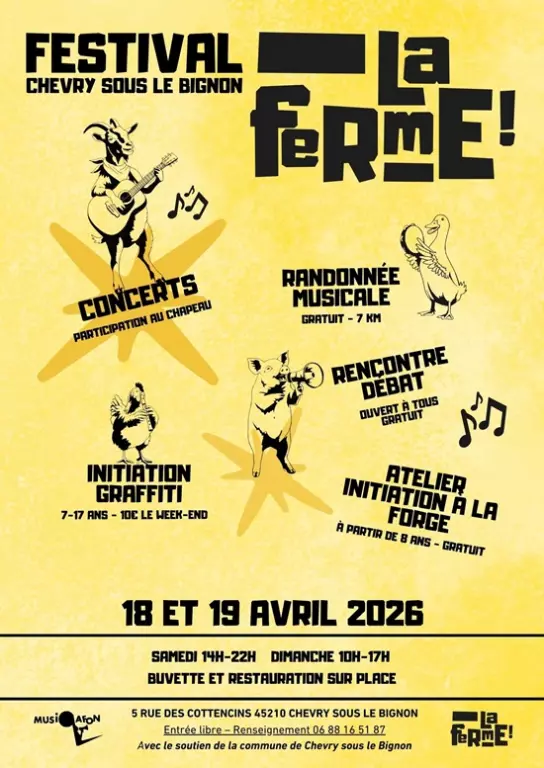 Le Festival LA FERME prend place à Chevry avec des concerts, une randonnée originale car musicale, initiation graffiti et de la forge, rencontre débat ....Un beau et joyeux week-end en perspective vous attend ! Buvette et restauration sur place.