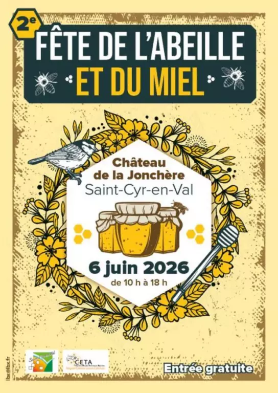 Différents stands liés à l'apiculture Histoire de l'abeille et de l'apiculture à travers les siècles Le travail de l'apiculteur au fil des saisons . L'organisation et la vie dans la ruche Le frelon asiatique et son impact sur l'environnement, comment lutter et mettre en place une lutte collective Une conférence sur l'apithérapie, les biens faits des produits de la ruche sur notre santé. Une en fin de matinée 11H00, une autre 15HOO Un Bric Api Vente de miel par les apiculteurs du CETA. Lecture de comte sur les abeilles par les personnes de la bibliothèque de Saint Cyr en Val en milieu d'après midi. Présence d'un brasseur avec de la bière au miel . Restauration sur place...