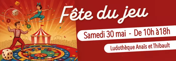 La fête du jeu à la ludothèque de Fleury-les-Aubrais ---------------------------------------------------- ### Samedi 30 mai de 10 h à 18 h, un événement à ne surtout pas manquer ! Tous les ans, la ludothèque Anaïs & Thibault célèbre le jeu pour les grands et les petits. Accrochez-vous, cette année on a mis le paquet ! ### _Les temps forts_ * **Ateliers d'initiation aux arts du cirque** : jonglerie (balles, foulards, anneaux, assiettes chinoises) et équilibre sur boule et sur fil de fer de 14 h 30 à 17 h 30 avec Axé Cirque. * **Jeu de rôle sur plateau** : à 13 h (compter 3 h de jeu), avec l'Association des Jeux pour Tous du Loiret. Sur inscription au 02.38.47.79.20 à partir du 30 avril. * **Initiation aux échecs de 10 h à 12 h** avec le club d'échecs La Tour, Pr...