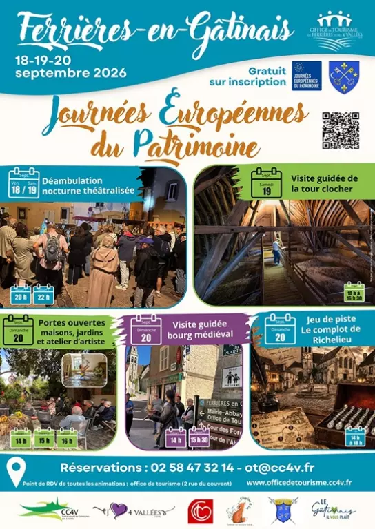 Les Journées Européennes du Patrimoine seront mises à l'honneur à Ferrières pendant tout le week-end ! Au programme : déambulation nocturne théâtralisée, visite de la tour clocher, jeu de piste, visite guidée dans le bourg médiéval et portes ouvertes des maisons et jardins ainsi que l'atelier de Sophie Berecz, maître verrier. Vous pouvez réserver vos places dès à présent !