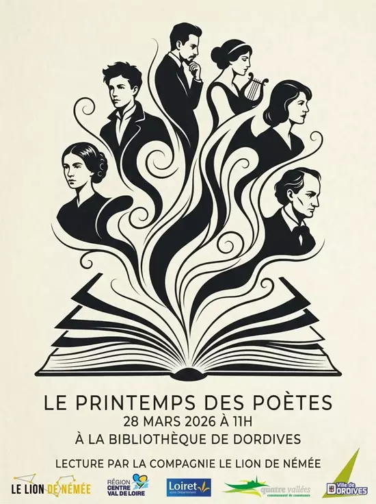 Venez célébrer le Printemps des poètes à la bibliothèque de Dordives ce samedi matin, une belle lecture de la compagnie Le Lion de Némée vous attend !