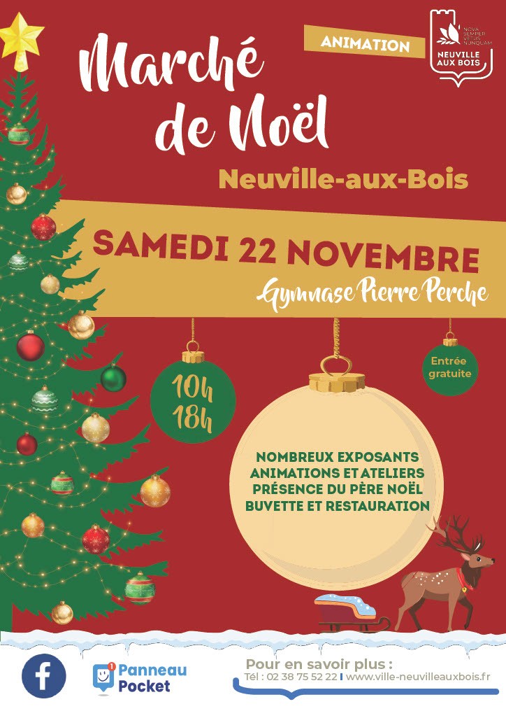 La mairie de Neuville-aux-Bois organise son Marché de Noël le : samedi 22 novembre 2025 (de 10h à 18h) au gymnase Pierre Perche (Impasse Du Gymnase 45170 Neuville-aux-Bois) Au programme : -de nombreux exposants (artisans, créateurs...) - animations et ateliers pour les petits et les grands -présence exceptionnelle du Père Noël -buvette et restauration sur place Venez nombreux ! Entrée gratuite