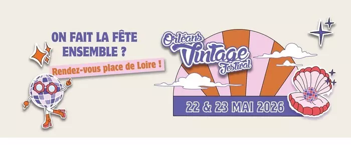 Orléans Vintage Festival 2026 Place et Quais de Loire, Jardin de la Charpenterie – Orléans 22 & 23 mai 2026 GRATUIT L’Orléans Vintage Festival revient pour une nouvelle édition… Cette année, on célèbre la fête sous toutes ses formes : une touche de disco, du glam et des paillettes, ️ et cet esprit summer qu’on attend avec impatience. Pendant deux jours, la Place de Loire se transforme en un véritable terrain de jeu vintage, festif et créatif : cinéma en plein air le vendredi soir, animations et stands le samedi en journée, DJ set pour finir en beauté. Pas mal, non ? Mais OVF, c’est aussi une équipe d’étudiants, qui travaillent toute l’année pour faire vivre un projet festif, responsable et porteur de valeurs ...