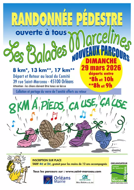Randonnée pedestre 8, 3 et 17 km avec un nouveau parcours . Départ et retour au local du Comité 39 rue Saint Marceau 45100 ORLEANS, inscription sur place, gratuit pour les moins de 12 ans accompagnés...
