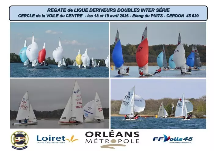 Régate inter série ouverte aux dériveurs doubles ( Fireball , 470 ,420 ,Jet,etc...) organisée par le Cercle de la Voile du Centre sur le plan d'eau de l'étang du Puits - Cerdon du Loiret 45 620 pendant 2 jours le week end du 18/19 avril 2026....