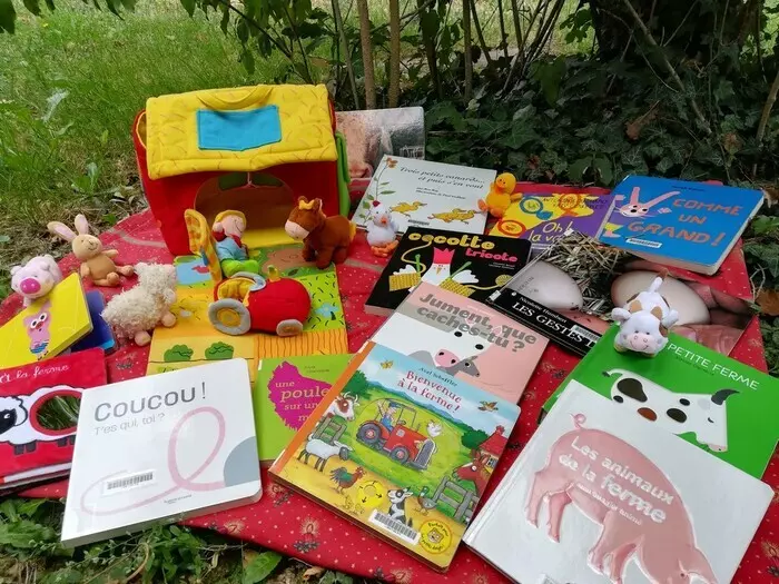 Des lectures pour les plus petits. En juin, on va voir les vaches et tous les autres animaux de la ferme grâce au Sac à Historiettes de la Médiathèque départementale du Loiret....