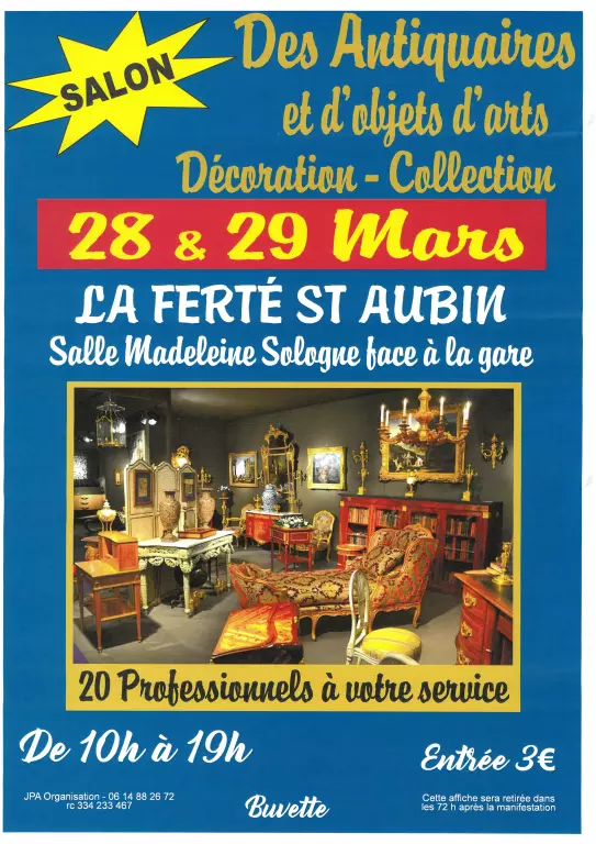 Salon des Antiquaires & d'objets d'arts 📅 Samedi 28 et dimanche 29 mars ⏰ De 10h à 19h 📍 Espace Madeleine Sologne • La Ferté Saint Aubin Salon des antiquaires et d'objets d'arts - Décoration - Collection 20 professionnels à votre service Entrée 3€ Buvette sur place