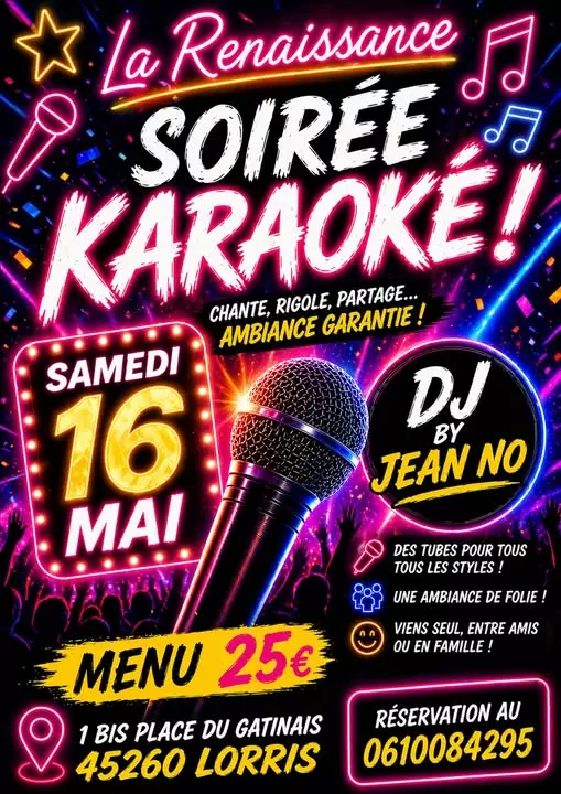Soirée karaoké + repas à 25€. Réservation au 06 10 08 42 95