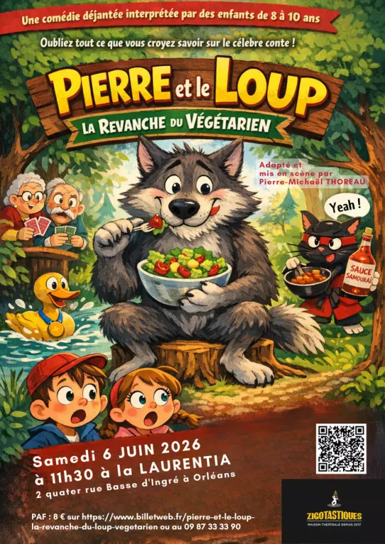 Oubliez tout ce que vous croyez savoir sur le célèbre conte de Prokofiev ! Pierre et sa cousine Lou s’évadent d'un salon ennuyeux pour une aventure rocambolesque. Entre des grands-parents obsédés par la crapette, des canards champions de natation et des chats experts en "sauce samouraï", la forêt est en ébullition. Mais le plus surprenant reste le Grand Méchant Loup : et s’il était simplement la victime de sa mauvaise réputation ? Une version moderne, drôle et décalée où les préjugés finissent (presque) tous au buffet !...