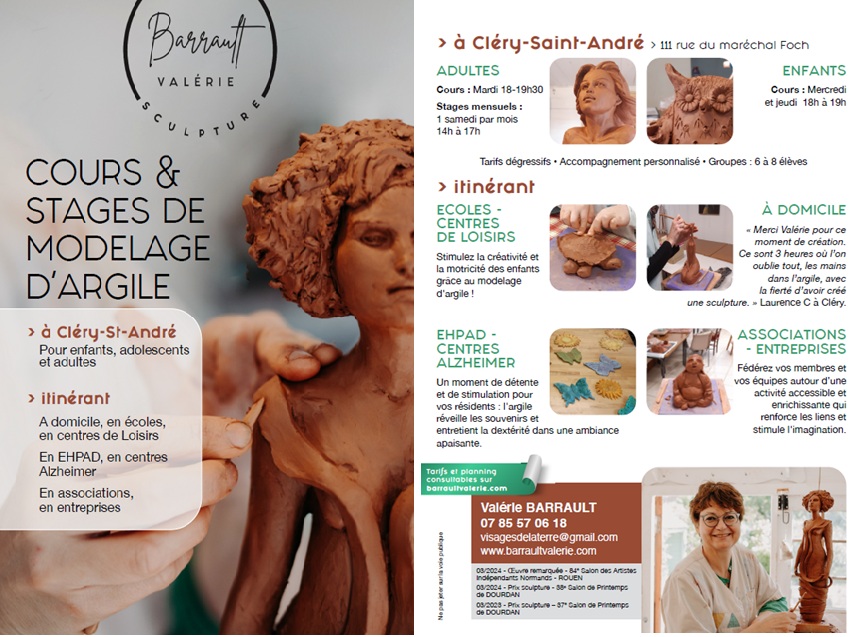 Animation d'un atelier de modelage d'argile destinés aux adultes à Cléry-Saint-André. Durant 3 heures, découvrez le modelage d'argile et repartez avec votre oeuvre ! Accompagnement personnalisé. Matériel inclus.