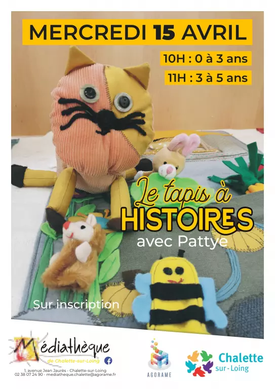 Animés par Pattye. 10H pour les enfants de la naissance à 3 ans et à 11H pour les enfants de 3 à 5 ans.