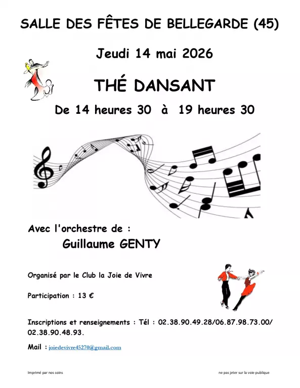Thé dansant avec l'orchestre Guillaume Genty. De 14h30 à 19h30. Tarif : 13€. Inscription et Renseignements : 02 38 90 49 28