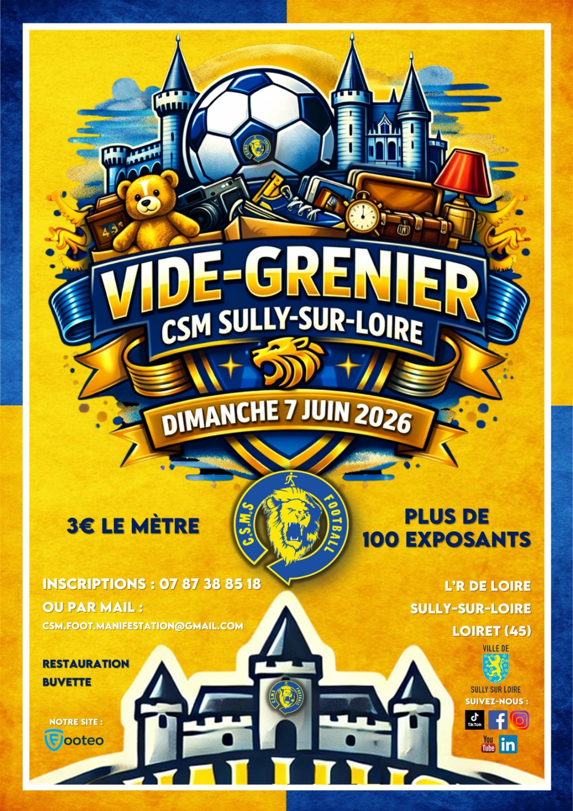 Le CSMS Handball reconduit comme chaque année son vide-greniers en bord de Loire pour une belle journée à chiner ! Buvette et tombola sur place. Facilement accessible aux véhicules - Plus de 100 exposants ! - par le CSMS Football -
