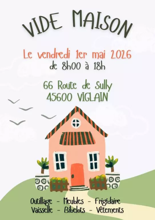 Vide Maison au 66 route de Sully, à Viglain. Vous y trouverez : outillage, meubles, frigidaire, vaisselle, bibelots et vêtements.
