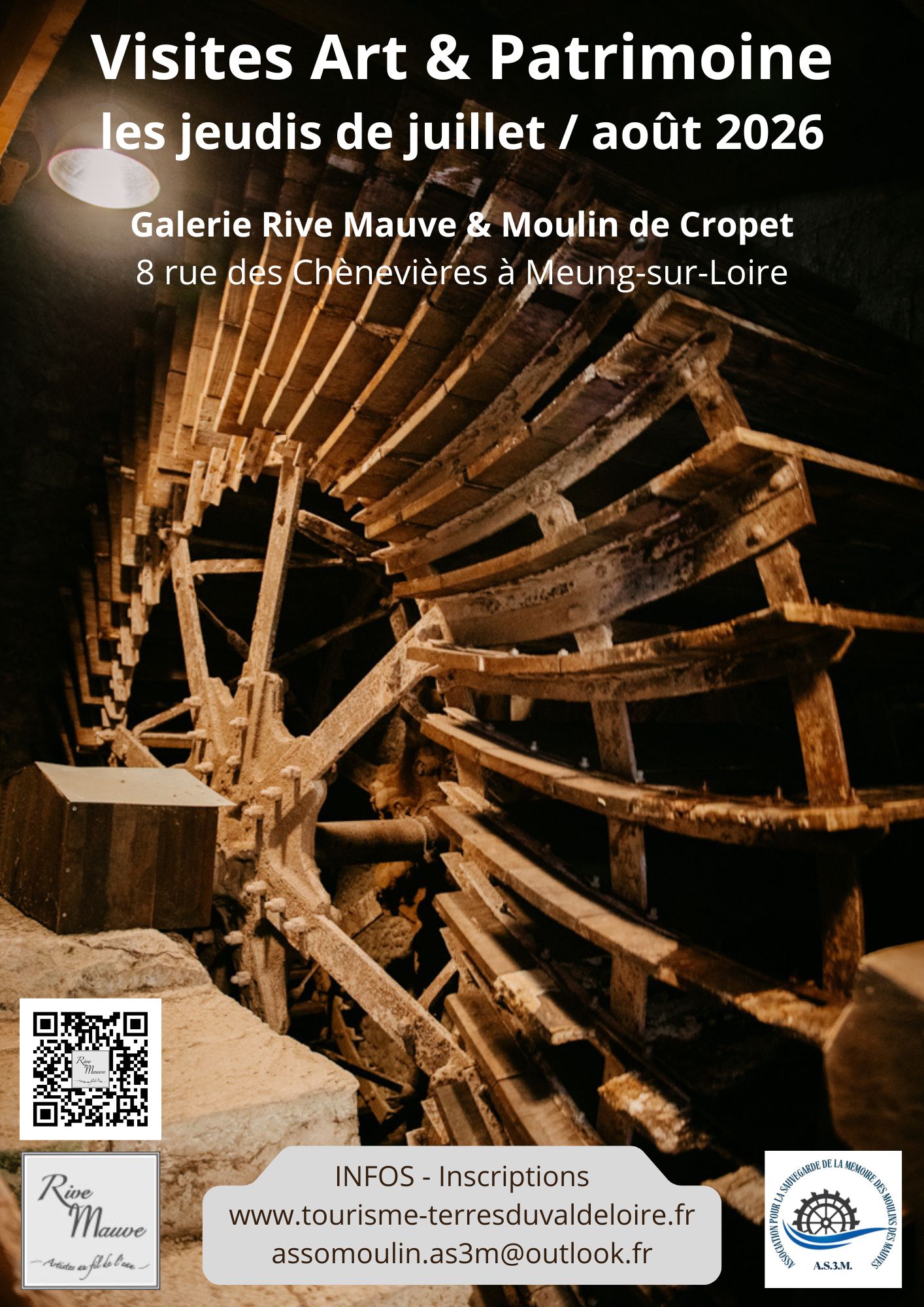 Cet été, l’Office de Tourisme vous invite à vivre une expérience unique placée sous le signe de l’authenticité et des belles rencontres ! C'est une double découverte qui vous attend pour cette animation ! À Meung-sur-Loire, le moulin de Cropet vous ouvre ses portes pour une visite, suivie d'une démonstration avec un meunier. Partez à la découverte de ce moulin Magdunois dont le mécanisme a été entièrement remis en état. Puis, poursuivez avec la découverte de la galerie d'art, la galerie Rive Mauve, installée dans les anciennes écuries. Réservation obligatoire - Place limitée Règlement sur place Tous les jeudis en juillet et août, à partir du 16 juillet 2026