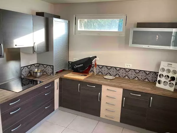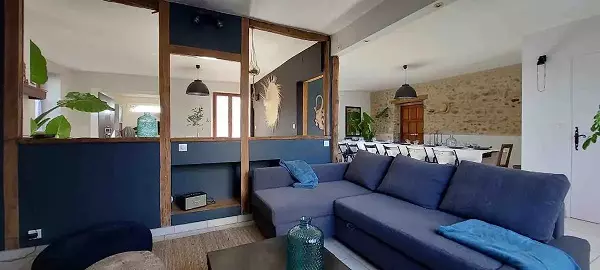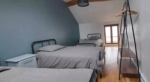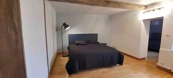 5 chambres doubles lits king size dont une suite parentale avec douche et wc une 6 eme chambre trois lits 200x90 Au total 3 wc une salle de bain avec douche et baignoire. Deux salons : à l étage avec deux canapés convertible deux places et un canapé convertible deux place, au rez-de-chaussée devant la cheminée. Parking privé jusqu’à 8 véhicules, une terrasse pleine, un barbecue, un jardin clos et arboré de 1200 m2, piscine privée.