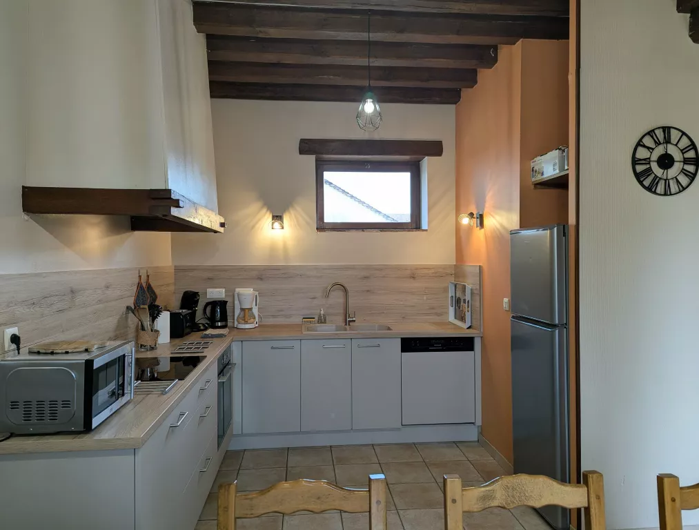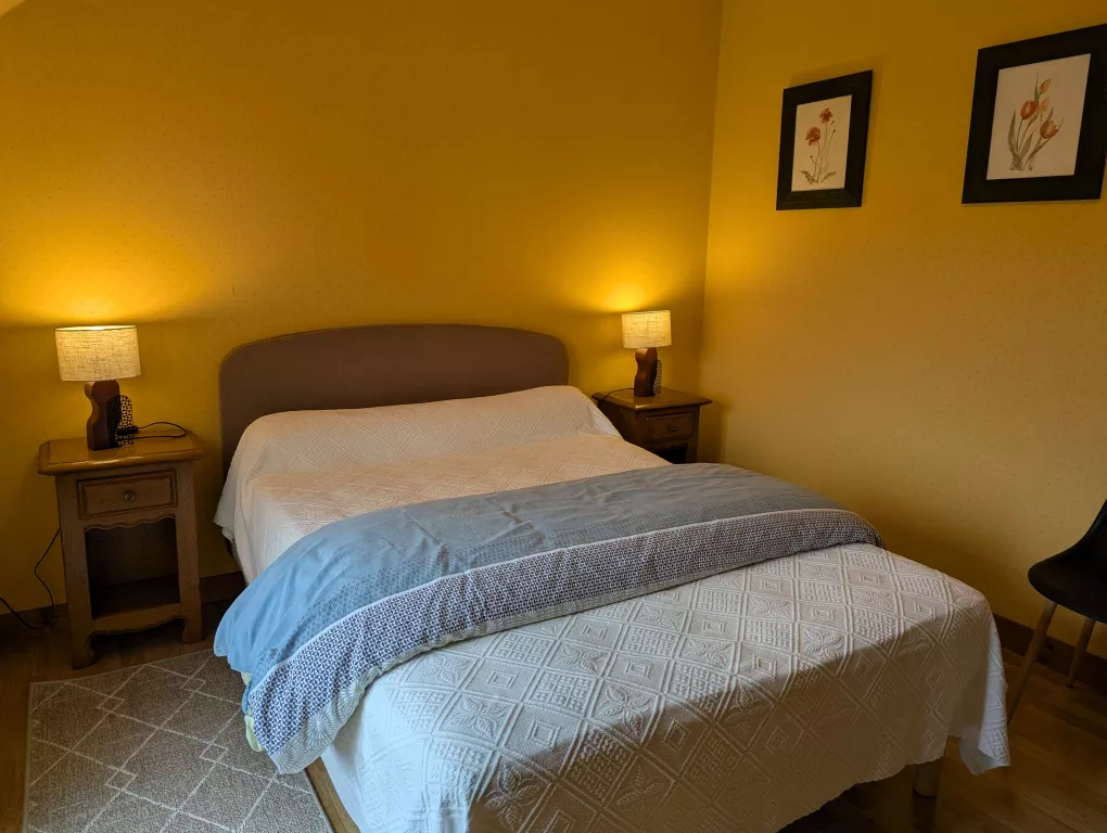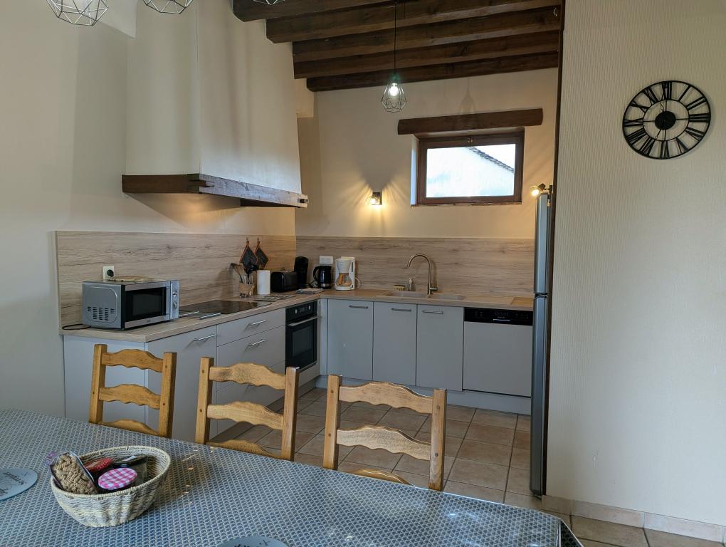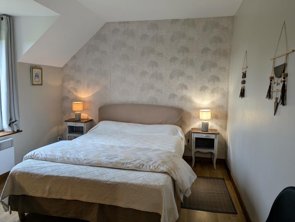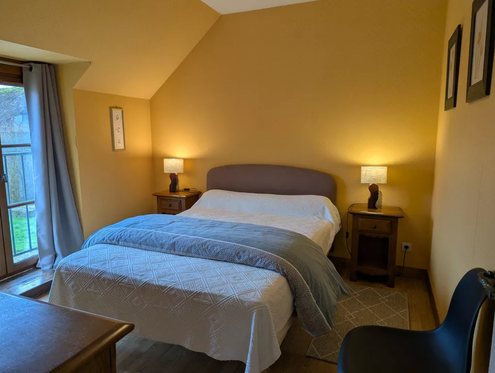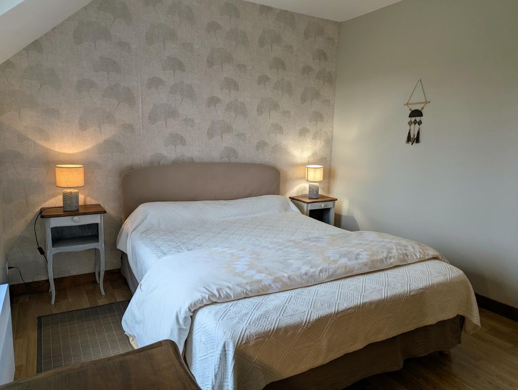 Rez-de-chaussée : - Pièce à vivre avec un salon d'un côté (TV, cheminée ouverte) et une salle à manger (table et 6 chaises) et sa cuisine équipée ouverte de l'autre (réfrigérateur avec congélateur, plaque de cuisson induction 3 zones, hotte, four électrique, micro-ondes, lave-vaisselle, cafetière à filtre, cafetière à dosettes, bouilloire, grille-pain. - WC indépendant. /!\ 1 marche entre cuisine et salon, et 1 marche entre entrée et cuisine. Étage : - Chambre n°1 avec 1 lit de 160x200), - Chambre n°2 avec 1 lit 140x190), - Chambre n°3 avec 2 lits 90x190), - Salle de bain indépendante (baignoire, lavabo, lave-linge, sèche-linge), - WC indépendant. Extérieur : Espace extérieur privatif non clos, avec salon de jardin, transats, parasol et barbecue. Vue sur l'étang ...