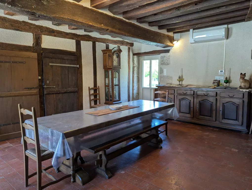 Le gîte "Le Petit Pozoir" pour 4/6 personnes est un hébergement situé au rez-de-chaussée de la maison. Il se compose de : - Une salle à manger pouvant recevoir l'ensemble des deux gîtes (grande table, bancs et chaises, cheminée) ; - Une cuisine entièrement équipée (réfrigérateur avec compartiment congélateur, lave-vaisselle, lave-linge, sèche-linge, hotte, four électrique, micro-ondes, plaque induction 3 feux, cafetière électrique à filtre, cafetière senseo, bouilloire, grille-pain) ; - Un salon avec canapé convertible 140x190 cm, 2 fauteuils, table basse, TV, deux chambres avec chacune un lit double 140x190 cm et une salle d'eau attenante privative pour chacune et deux wc indépendant ; Il dispose d'une entrée depuis la cour intérieure et est équipé d'un jardin attenant (n...